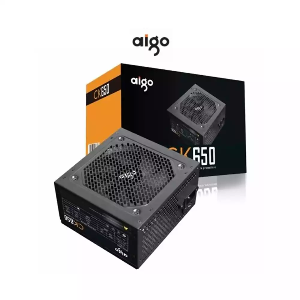 AIGO CK650 computer source with real capacity of 650W uses computer configurations from light to high-end, from office machines to mid-range gaming computers, luxurious and elegant black color.