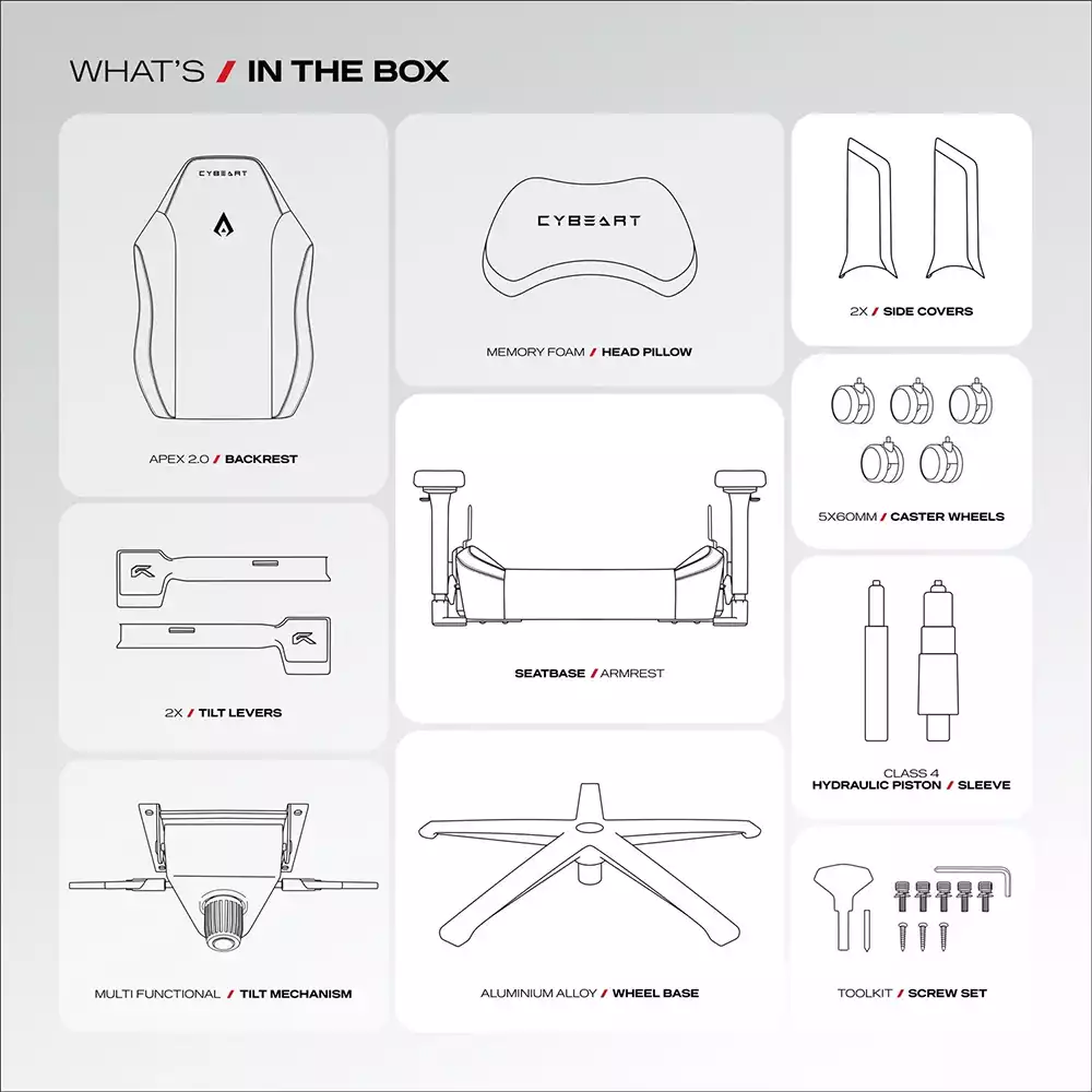 - Cold Cured Foam: Cybeart Apex Series uses Cold-Cured Foam material for seats and the backrest – the perfect balance between firm and soft offering you impeccable comfort and support.
