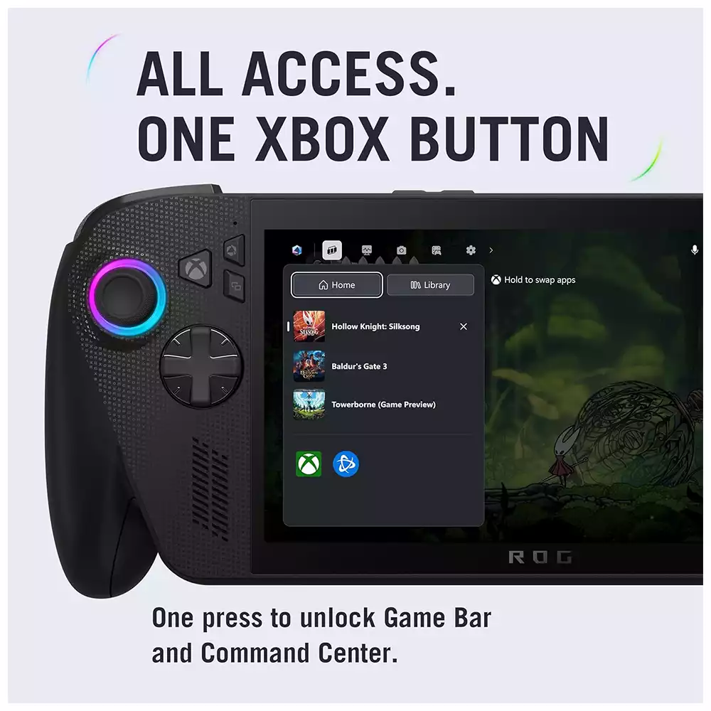 - ALL YOUR GAMES, ALL YOUR PROGRESS Powered by Windows 11, the ROG Xbox Ally gives you access to your full library of PC games from Xbox and other game stores. With Xbox Play Anywhere, you can pick up right where you left off on your PC or Xbox and jump back into the game anytime.