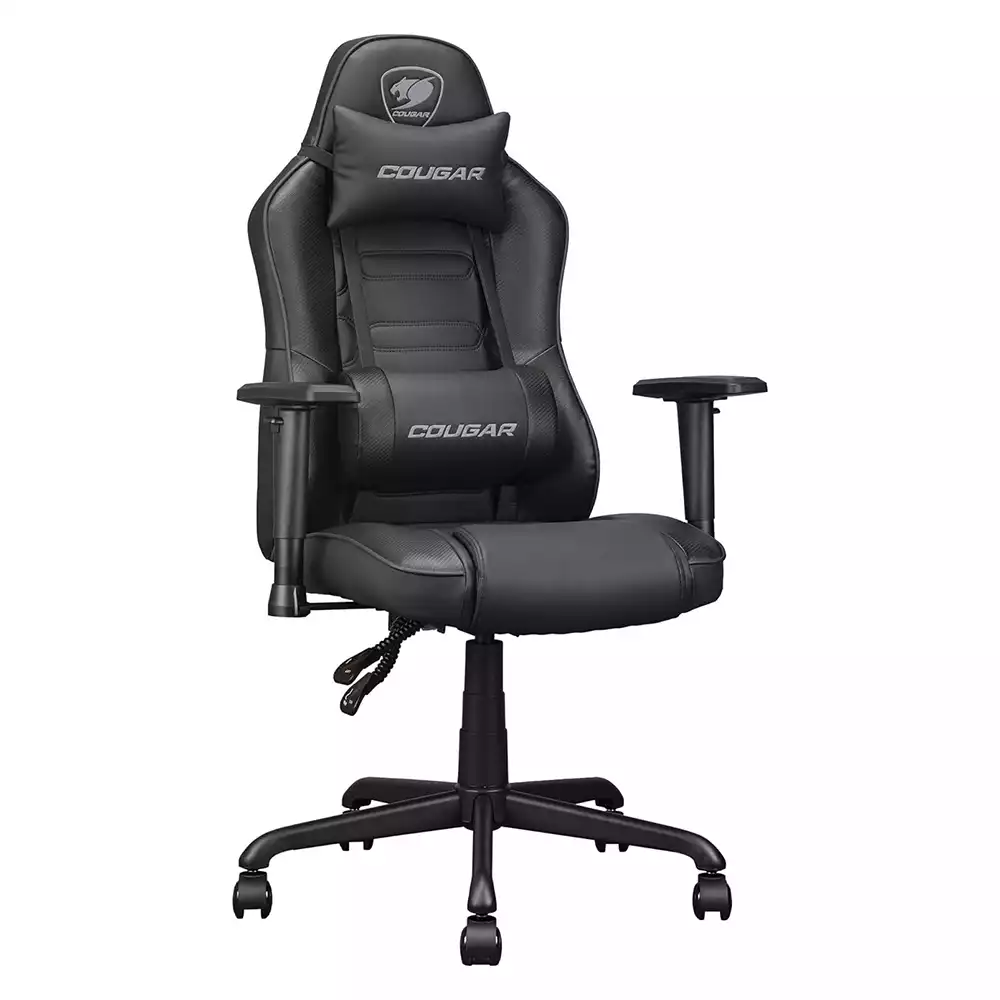COUGAR Fusion S Ergonomic Gaming Chair, PVC Faux Leather, Metal 5-Star Base, , Built-in 3D Curved Lumbar Support, Adjustable Armrest, Class 4 Gas Lift Cylinder, 120 kg, Black