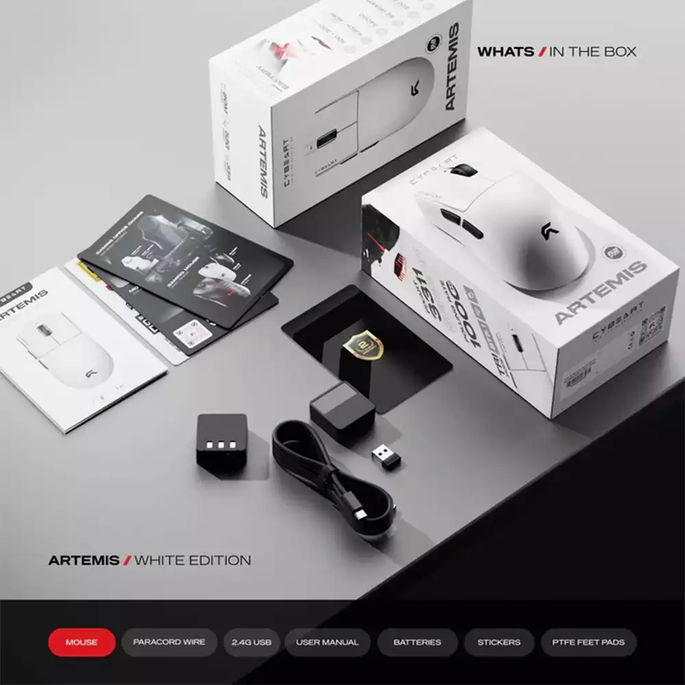 Cybeart Artemis | 1K 52g Ultra-light Hot-Swap Tri-Mode Gaming Mouse - White