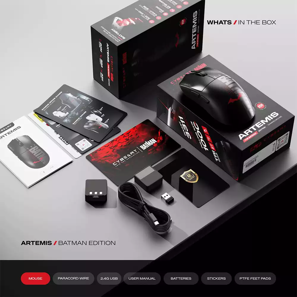 Cybeart | Artemis – The Batman 52g Ultra-Light Wireless Gaming Mouse | Dual 300mA Hyperswap™ Battery | 24,000 DPI | 1K Polling Rate | 80M Kailh Switches | Tri Mode