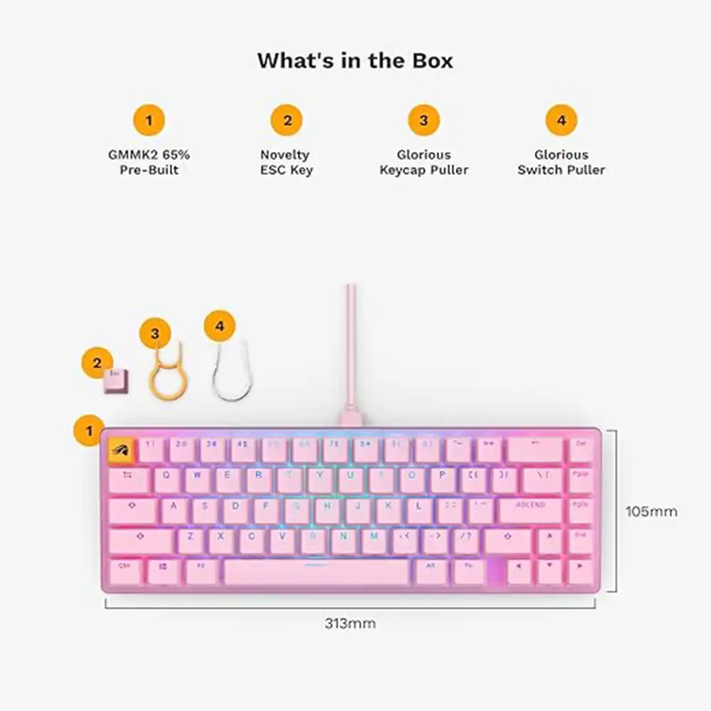 Glorious GMMK2 RGB Mechanical Full Size Pre-built Keyboard – Pink