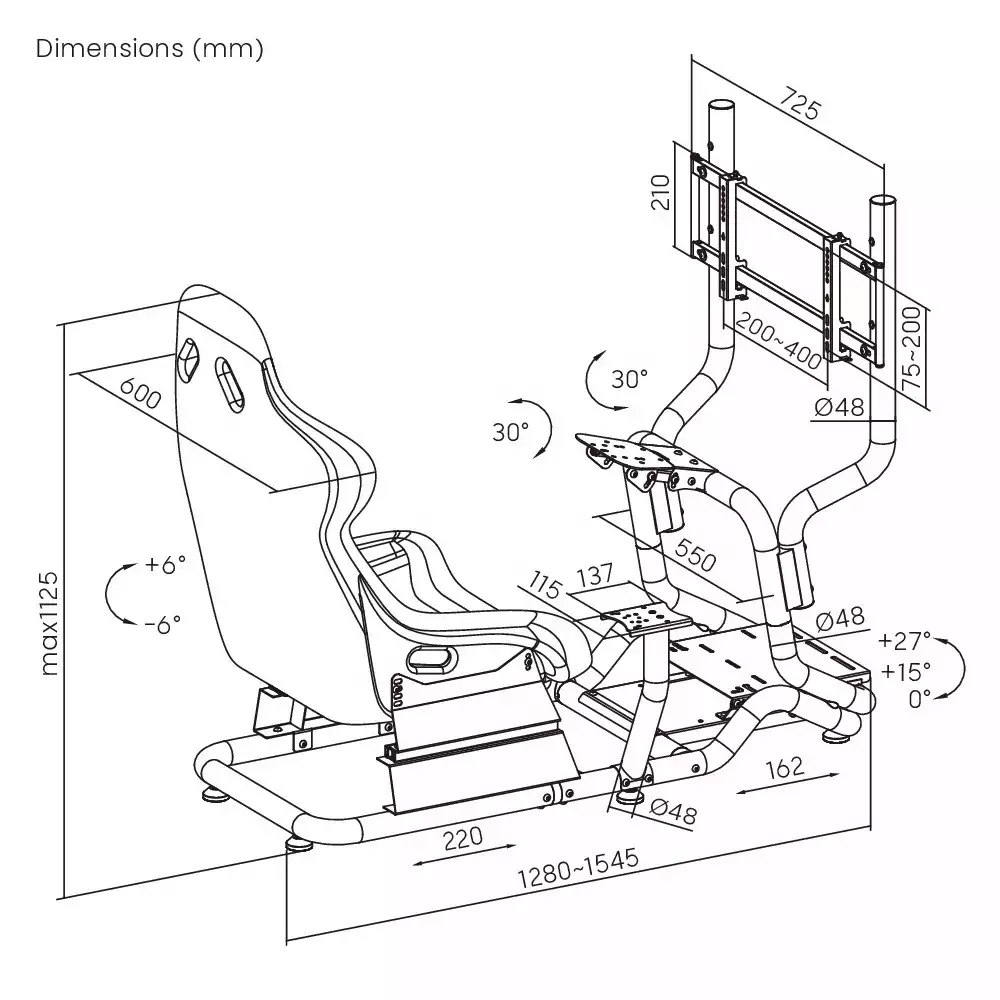 - Seat Back Tilt Range:+6°~-6°