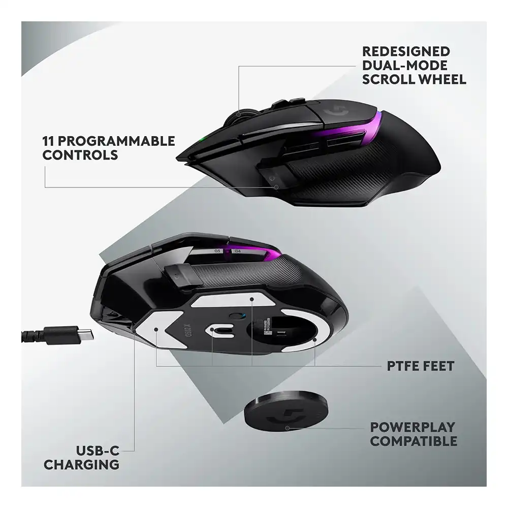 - POWERPLAY compatible: G502 X PLUS wireless PC gaming mouse stays charged, at rest and at play, with our unique wireless charging solution (sold separately)