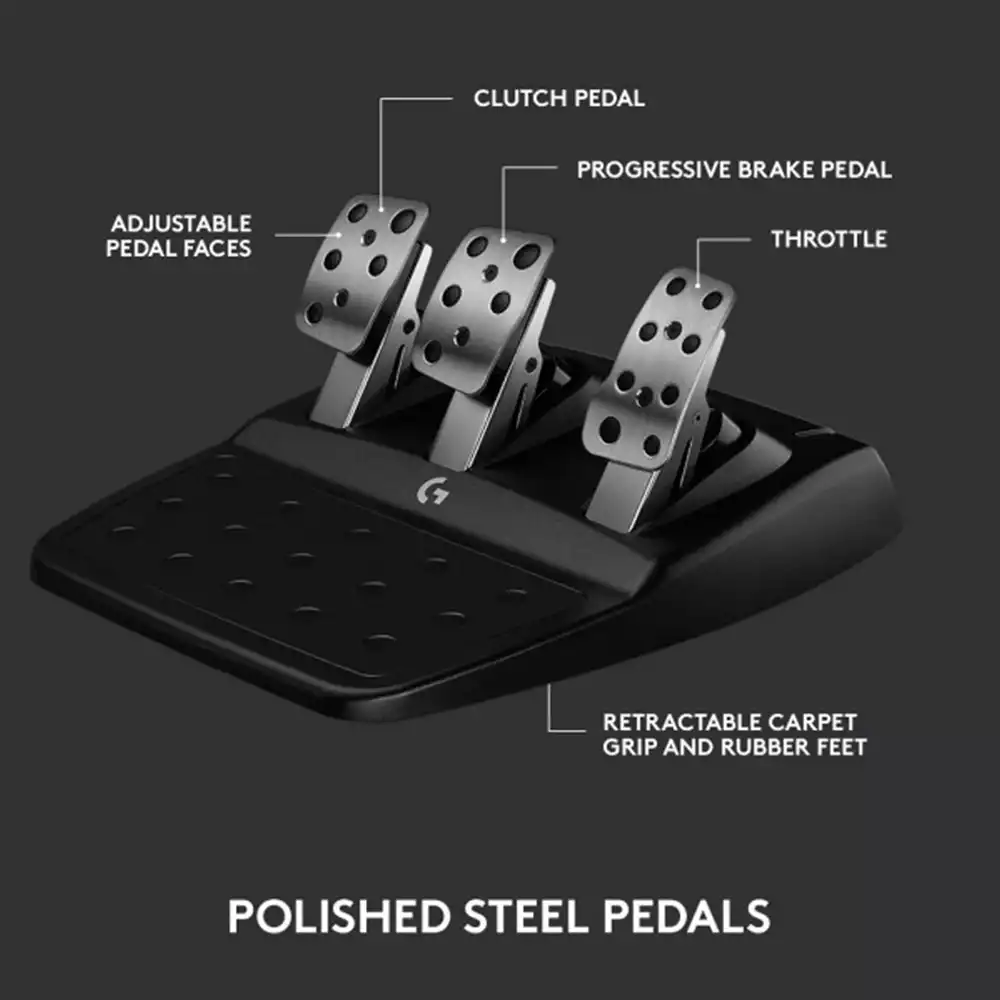 - Premium Racing Design: Refreshed Logitech G gear design includes premium materials like a hand-stitched black leather wheel cover and polished metal pedals; experience the pleasure of driving at home
