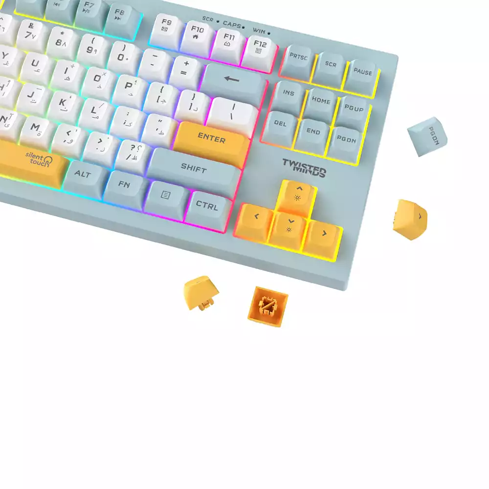 Twisted Minds TM-MK75-W 80% Spectrum Series Wired Membrane Keyboard, 87 Keys, English/Arabic Layout, Silver Paste, Rainbow Backlit, 19-Key Anti-Ghosting, 1.5m Detachable Cable, Blue | TM-MK75-W
